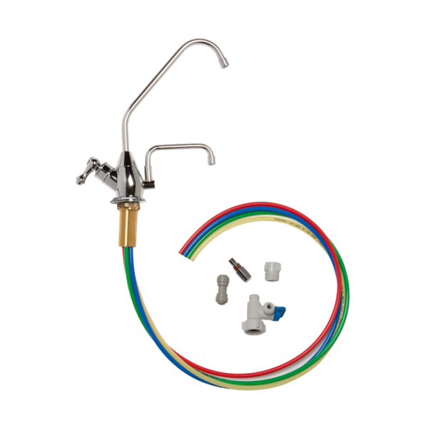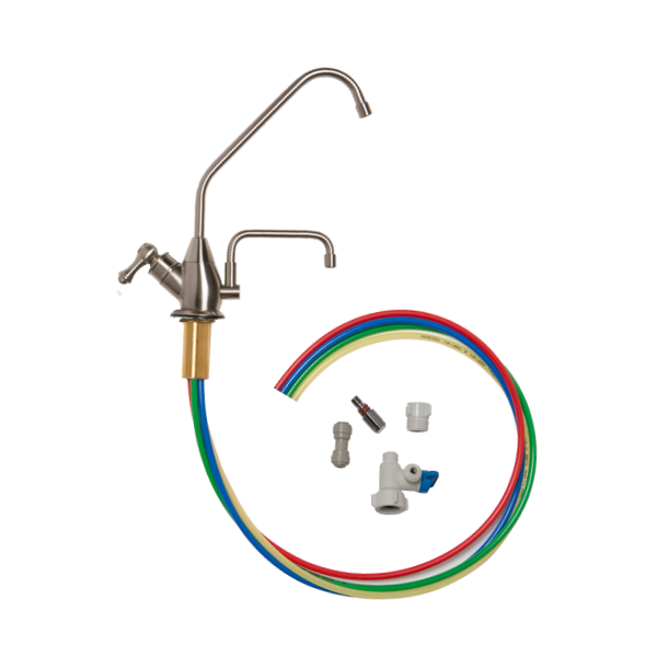 The Under-Sink Kit, allows you to install your Melody or Athena under the sink and receive your ionized water from a dedicated faucet at your sink. The Kits provide a SPECIALTY FAUCET and all the parts needed for most installations of your under sink water filter system. You will also need a 110 Volt outlet to power your ionizer. Specs: Height of Faucet Above Counter: 9 inches; Max. Width: 9 inches; Hole Diameter: 1 3/8 - 1 1/2 inches; Hose Length: 34 inches. To see diagramatic of undersink installation.