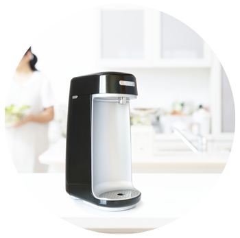 The dispensing button at the top of the elita Pure allows for quick and easy access to clean, alkaline, H2 enhanced water. Simply press the button to start dispensing, then press it again once you're finished. Connect to your water supply at the tap with a diverter or directly to your cold water line.