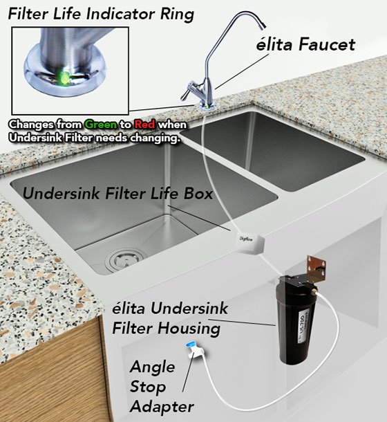 The new elita US-700 undersink water filter offers an improved customer experience, increased functionality and ease of use. Designed with a pressure rated housing for undersink application, an inline filter counter and a sleek faucet that goes at your sink, it is the ultimate in performance, style and convenience.