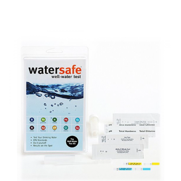 This do-it-yourself, at-home well water test kit tests for nine different metrics in drinking water including Bacteria, Lead, Pesticides, Nitrates, Nitrites, Chlorine, Hardness, pH, Iron and Copper.