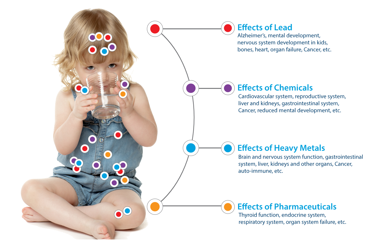 "10 major brands. 38 pollutants. Bottled water contains disinfectant by-products, fertilizer residue, and pain medicine."